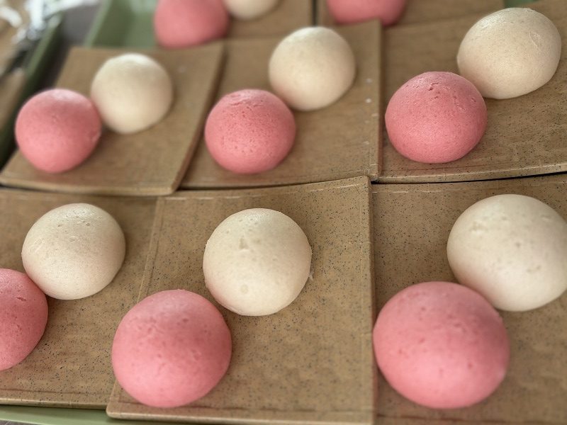 皆さんとめでたい紅白まんじゅうを楽しみます。