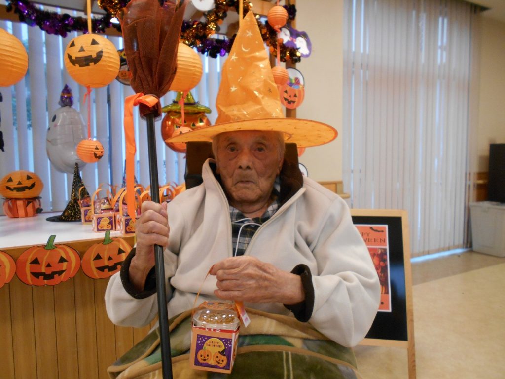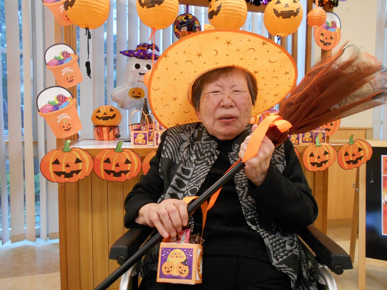 魔女に変装して記念写真📷お菓子もプレゼント(^▽^)/