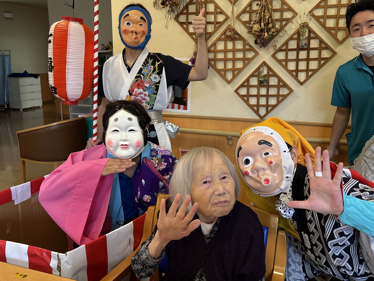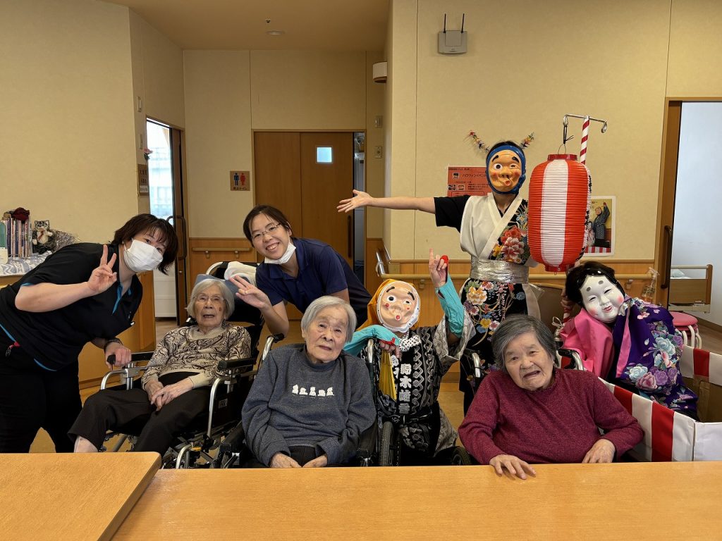 午後一番に施設の皆様に ひょっとこ隊が巡業し写真撮影📷
