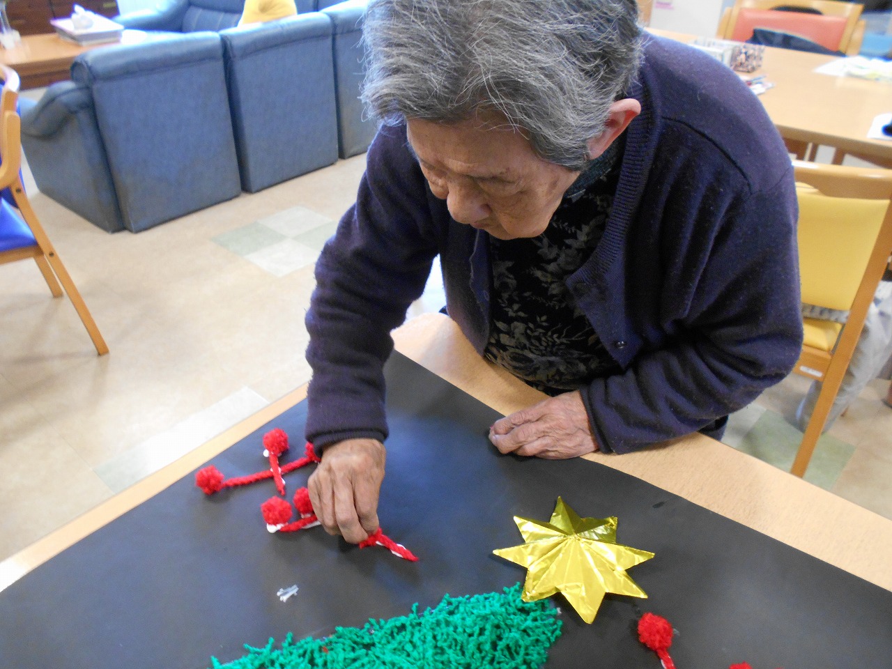 可愛らしいツリーが出来上がってきますね。