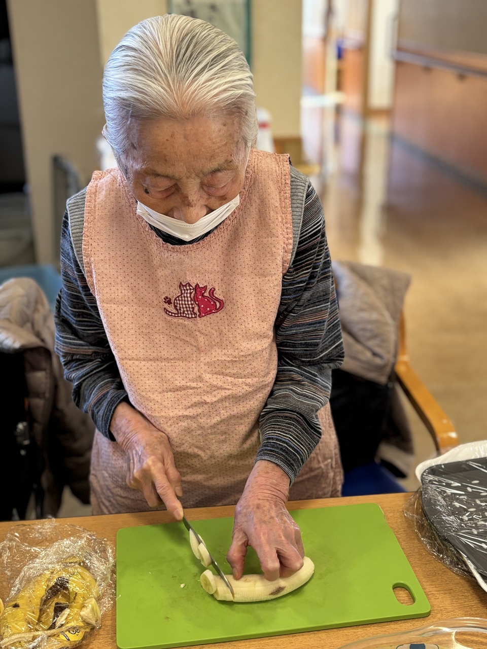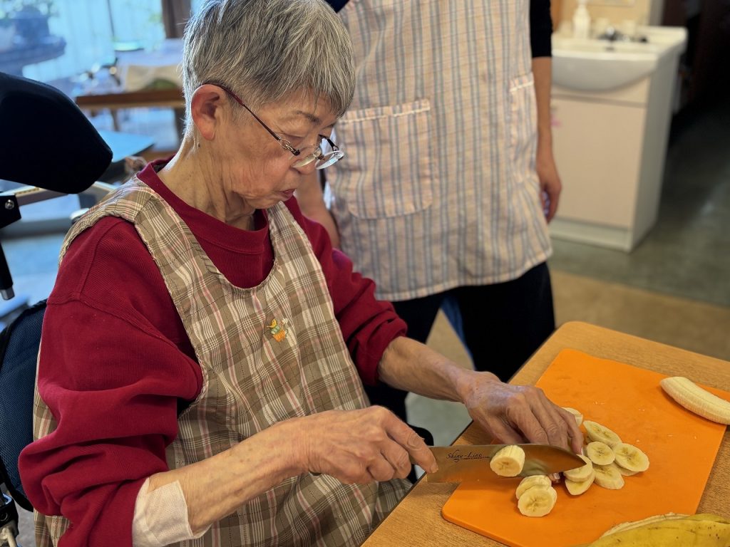 トントン・・・・バナナをカット