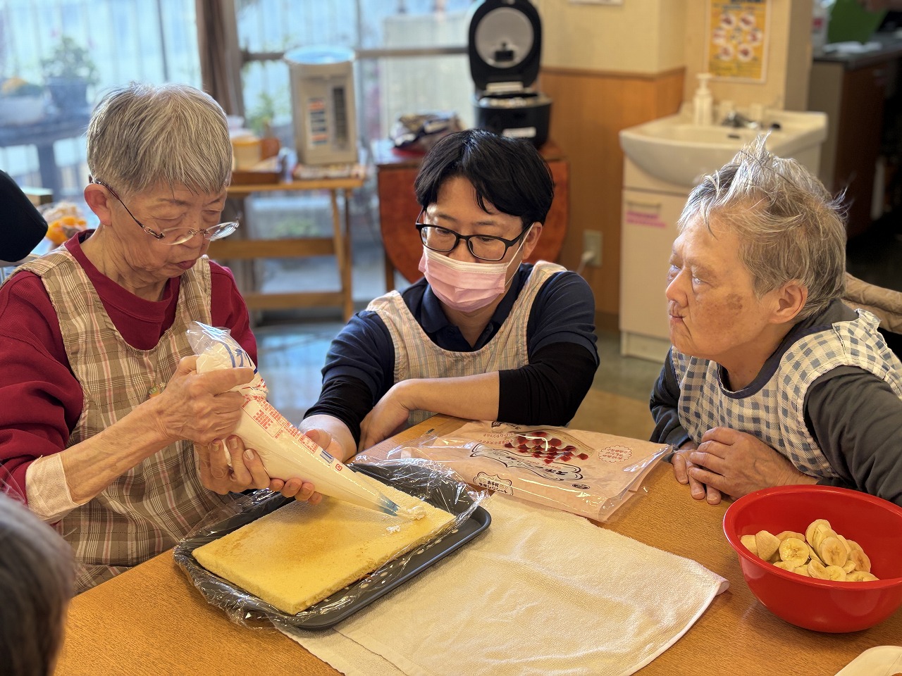 七福神のショートステイでは、先日、デコレーションケーキを