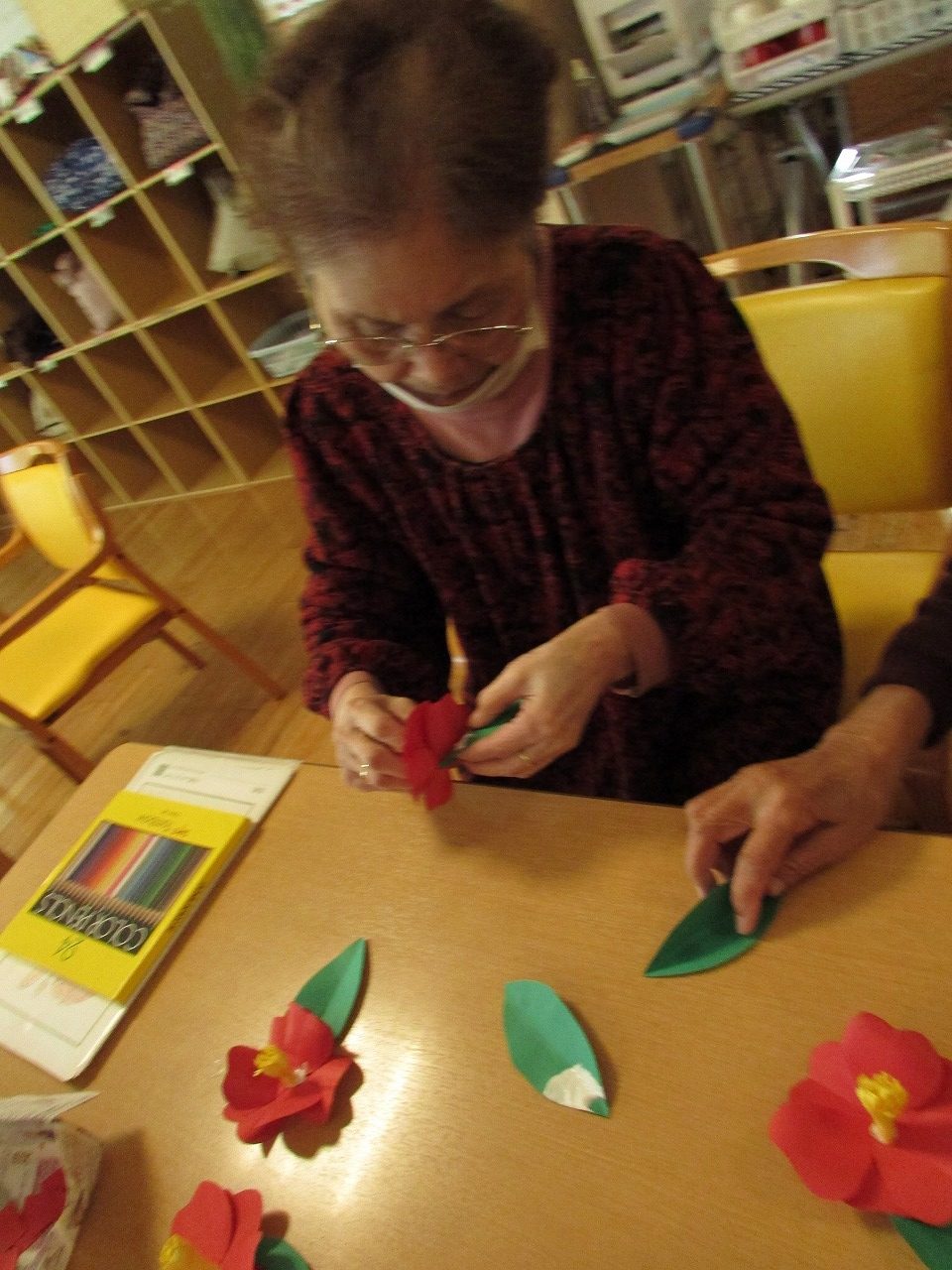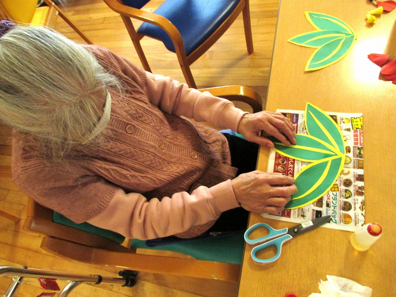 デイサービスで、お飾りをそれぞれ作ります。