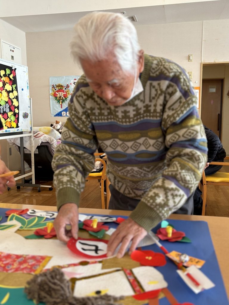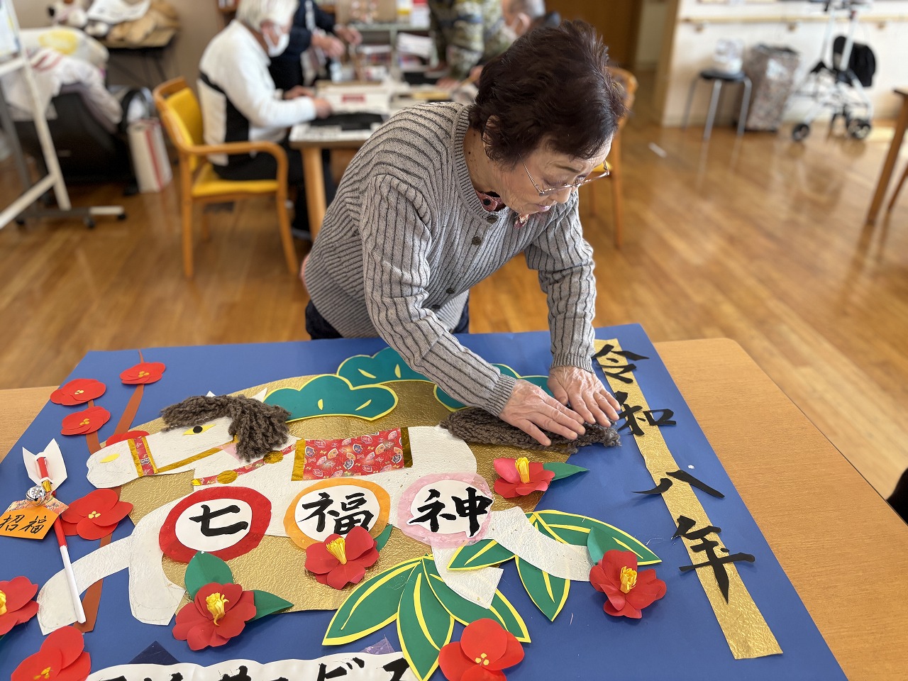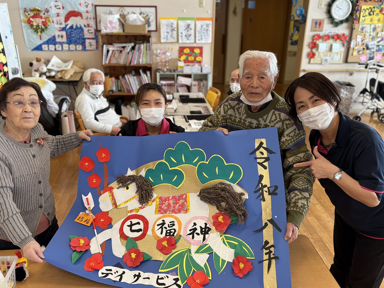 七福神のデイサービスでは、毎年、年明けの壁画をみんなで作成して