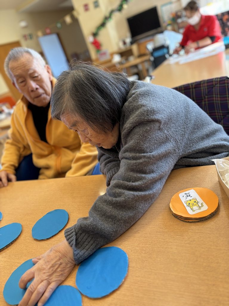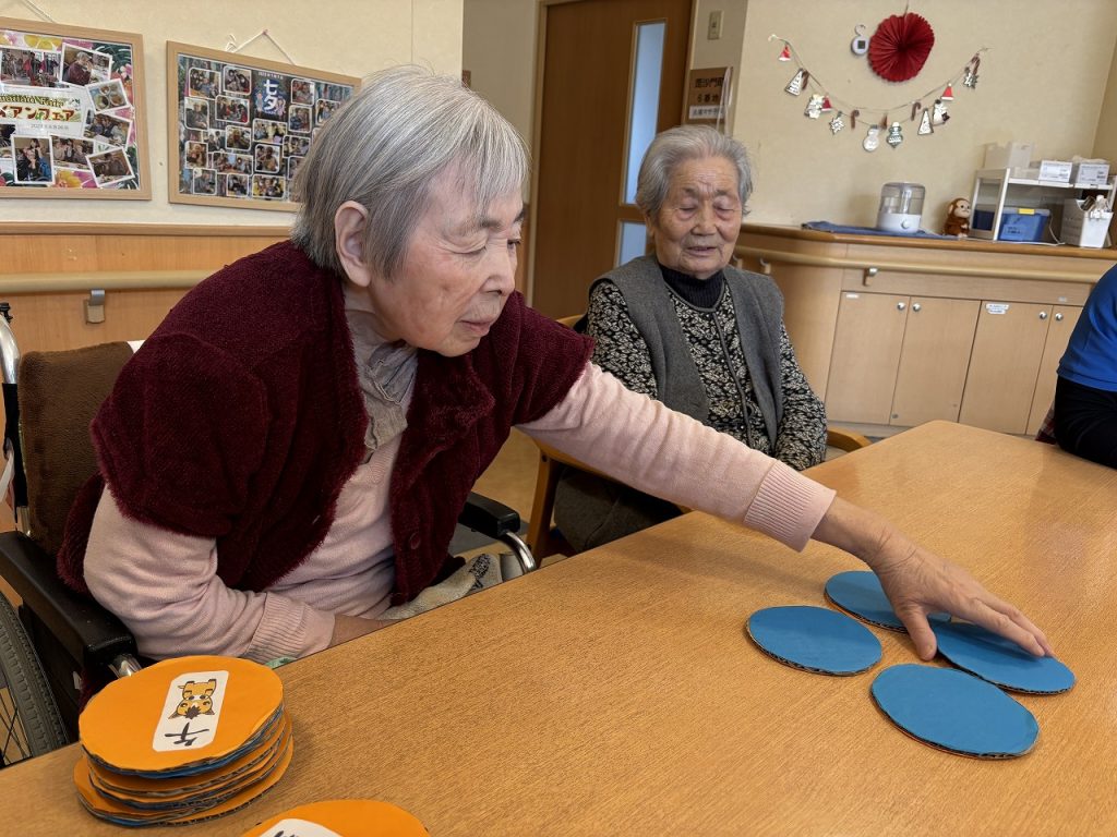 かるた遊びします。狙いを決めて~